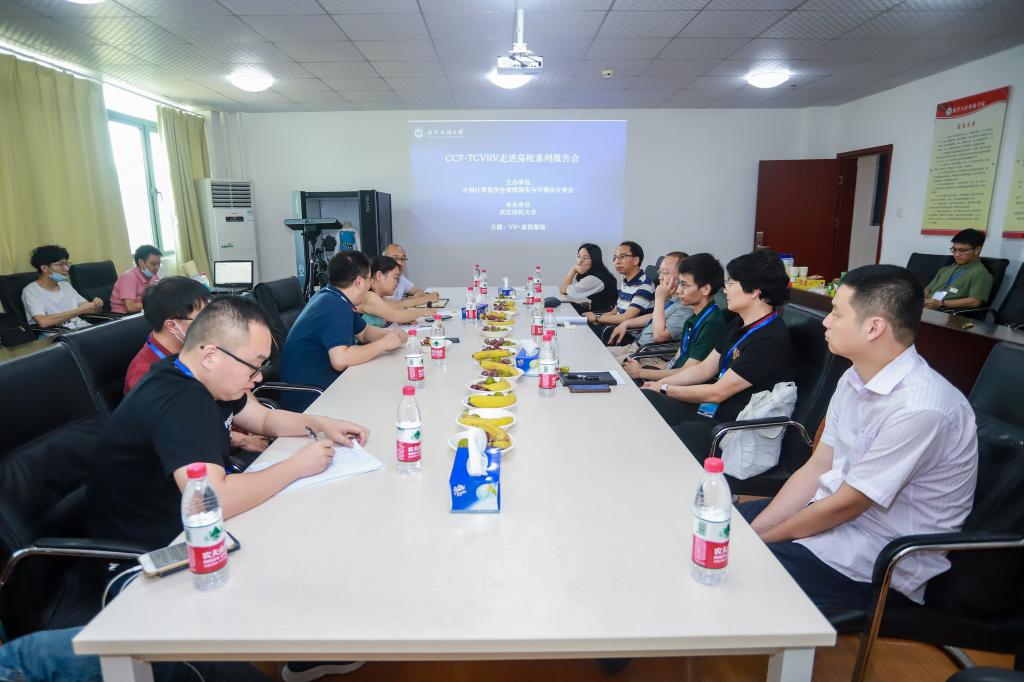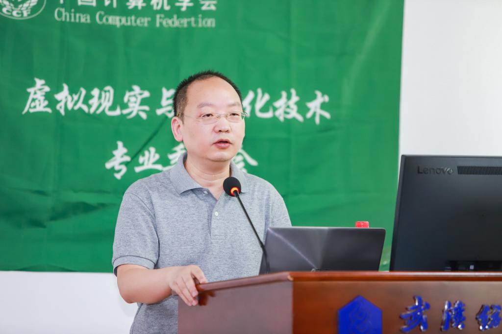 活动分为上午的专家报告环节和下午圆桌讨论环节。上午环节部分由欧美伦理电影 院长胡新荣教授主持,并进行了中国计算机学会虚拟现实与可视化专委会秘书处(武汉)授牌仪式。