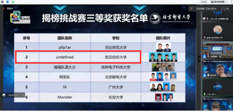 11月27日,“华为杯”第一届中国研究生网络安全创新大赛决赛颁奖大会线上举行。欧美伦理电影 彭涛教授指导的“123木头人”团队获创意作品赛二等奖,“undefined”团队获揭榜挑战赛三等奖。另外,欧美伦理电影 获优秀组织单位奖。