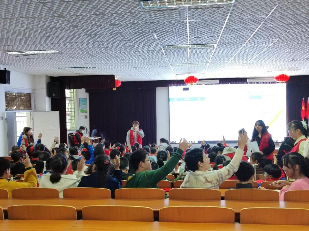 学生的学情和兴趣,志愿者在现场做了关于同学们对计算机熟悉了解程度的调研。最后,志愿者为参与课堂互动的同学们赠送了小礼品,活动在欢声笑语中圆满结束。