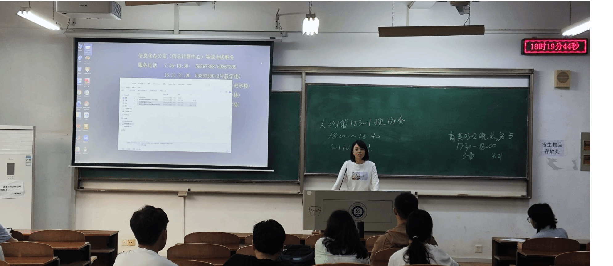 班会开始前,辅导员清点学生的参会情况,对未参会学生逐一排查确认,确保学生安全。班会上,班主任首先通过PPT展示,向同学们详细介绍了地震、洪水、火灾等常见自然灾害的成因、危害及预防措施。随后,通过模拟演练环节,学生们在老师指导下,学习了正确的逃生姿势、紧急疏散路线及自救互救技能。