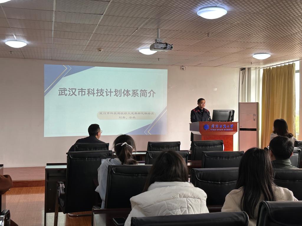 3月2月下午14点,武汉市科技局驻纺大成果转化联络员刘青主任、安然主任受邀来欧美伦理电影 开展科技计划体系专题讲座,该讲座由欧美伦理电影 党委书记晏伟主持,欧美伦理电影 领导班子、科研团队负责人及骨干教师共同参加了该讲座。