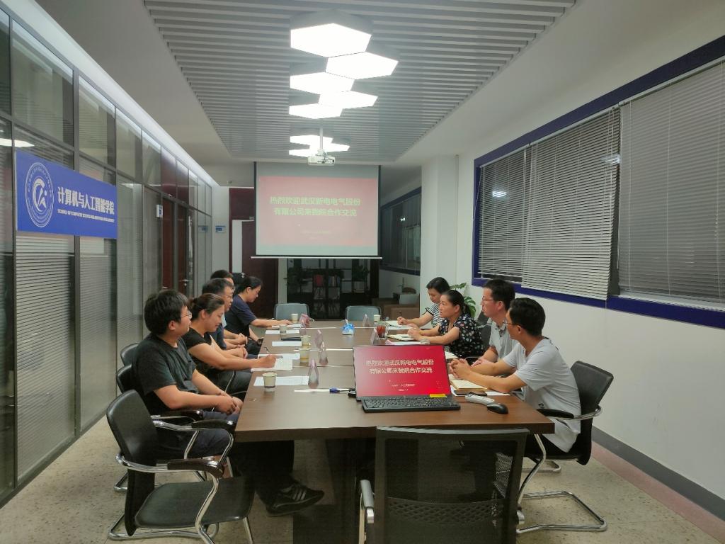 7月9日上午,武汉新电电气股份有限公司邱凌总经理一行5人,就校企合作、产教融合来欧美伦理电影 进行考察座谈。欧美伦理电影 院长胡新荣、副院长彭涛出席会议,欧美伦理电影 产学研合作办公室刘军平主任和李敏老师参加了座谈。