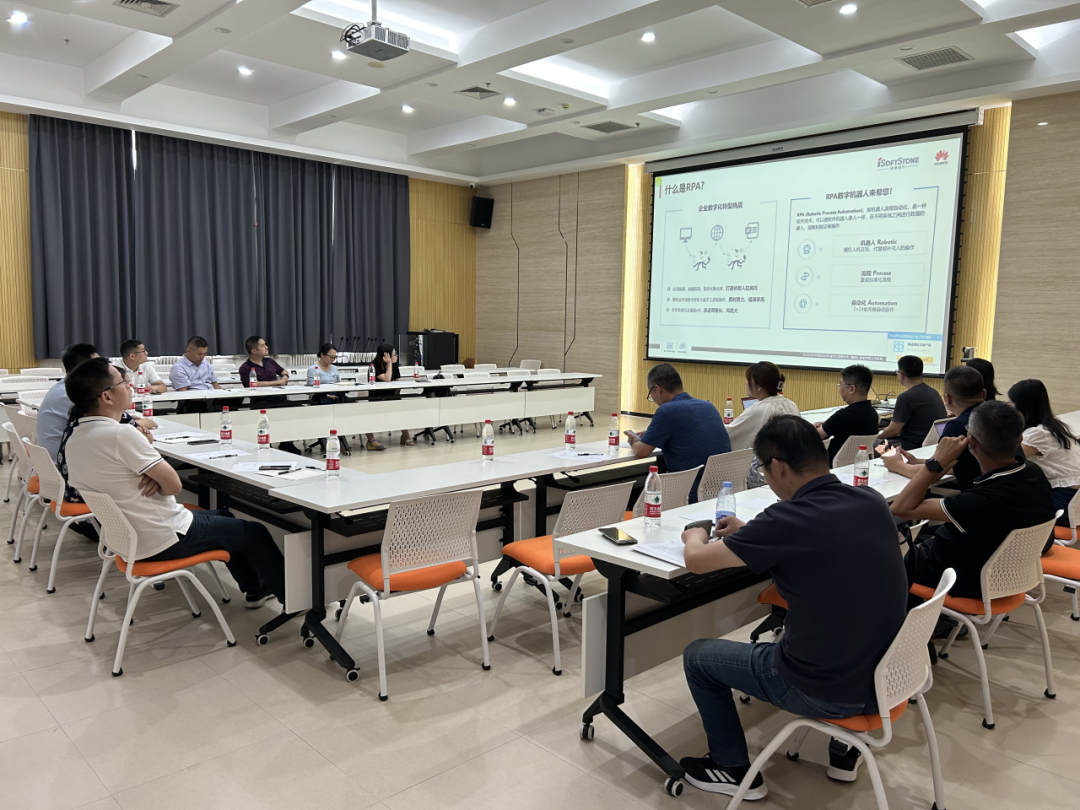 数字经济实验室杨军主任对胡新荣一行的到来表示热烈欢迎,并从实验室的软硬件设施、数据及算力底座的建设情况,核心技术方法开发进展,以及重点研究任务的推进情况等对数字经济实验室进行了全面介绍。软通动力集团售前咨询顾问翟雨欣和李辉介绍了软通动力与华为共同开发的RPA、AI端云一体系统和数字机器人实训室等产品,希望双方能共同搭建校企联手、产学合作育人平台。